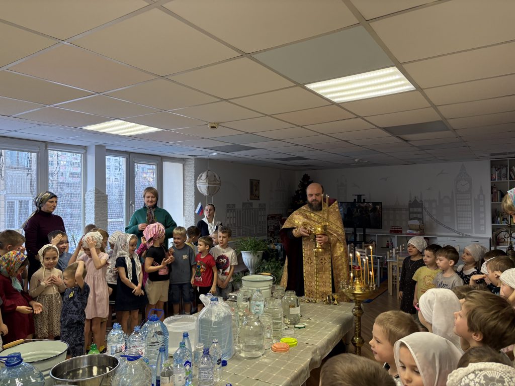19 января все православные отметили праздник — Крещение Господа Бога и Спаса нашего Иисуса Христа – один из важнейших христианских праздников. В этот день христиане всего мира вспоминают евангельское событие – крещение Иисуса Христа в реке Иордан.Второе название – Богоявление — дано празднику в память о чуде, которое произошло во время крещения. На Христа с небес сошёл Дух Святой в облике голубя и глас с неба назвал его Сыном. Каждое «Крещение» люди набирают святую воду в храмах. Она исцеляет болезни, очищает разум от скверны и делает душу светлее. Умываться святой водой в течение года можно перед важным делом или перед сном. Ее животворящая сила будет сохраняться целый год.Ежегодно, в этот великий праздник, духовный наставник нашего православного детского сада «Рождественский», о. Валентин совершает чин водосвятия, поздравляет детский и взрослый коллектив с праздником, рассказывает его историю и традиции.