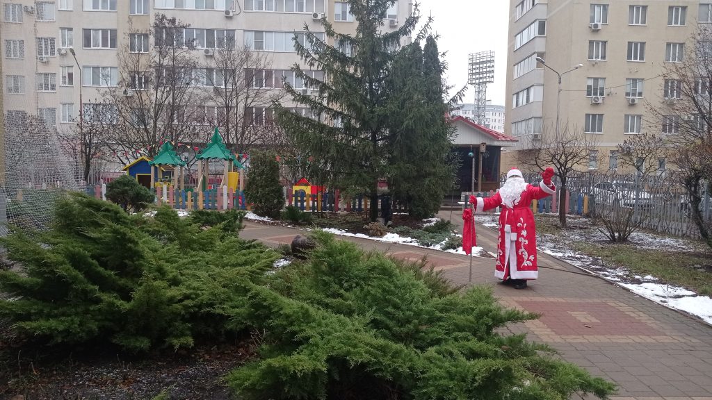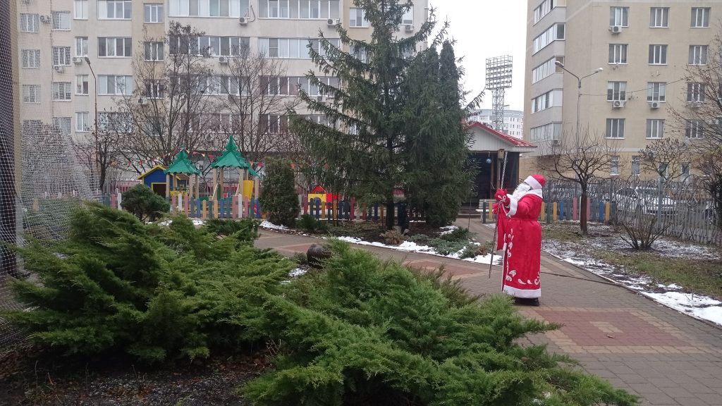 Сегодня в нашем детском саду произошло волшебное событие! В преддверии Новогодних утренников под окнами детского сада был замечен настоящий Дед Мороз! Он укутывал ёлочки пушистым снежком, махал детям и показывал мешок с подарками. Сколько было радости на лицах у детей, когда Дед Мороз поприветствовал детей и взрослых, помахав всем рукой!