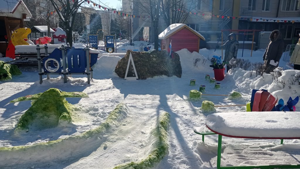 В нашем детском саду прошёл конкурс на лучшее новогоднее оформление игровых участков «Зимушка — Зима, закрутила, замела» Наши педагоги с удовольствием приняли решение поучаствовать в мероприятии. Родители воспитанников не остались в стороне и тоже приняли участие в таком интересном конкурсе. Все вместе подбирали материалы, разрабатывали проекты, сгребали снег для построек, создавали шедевры из снега, творчески с задором и с любовью украшали свои творения и придумывали им названия!