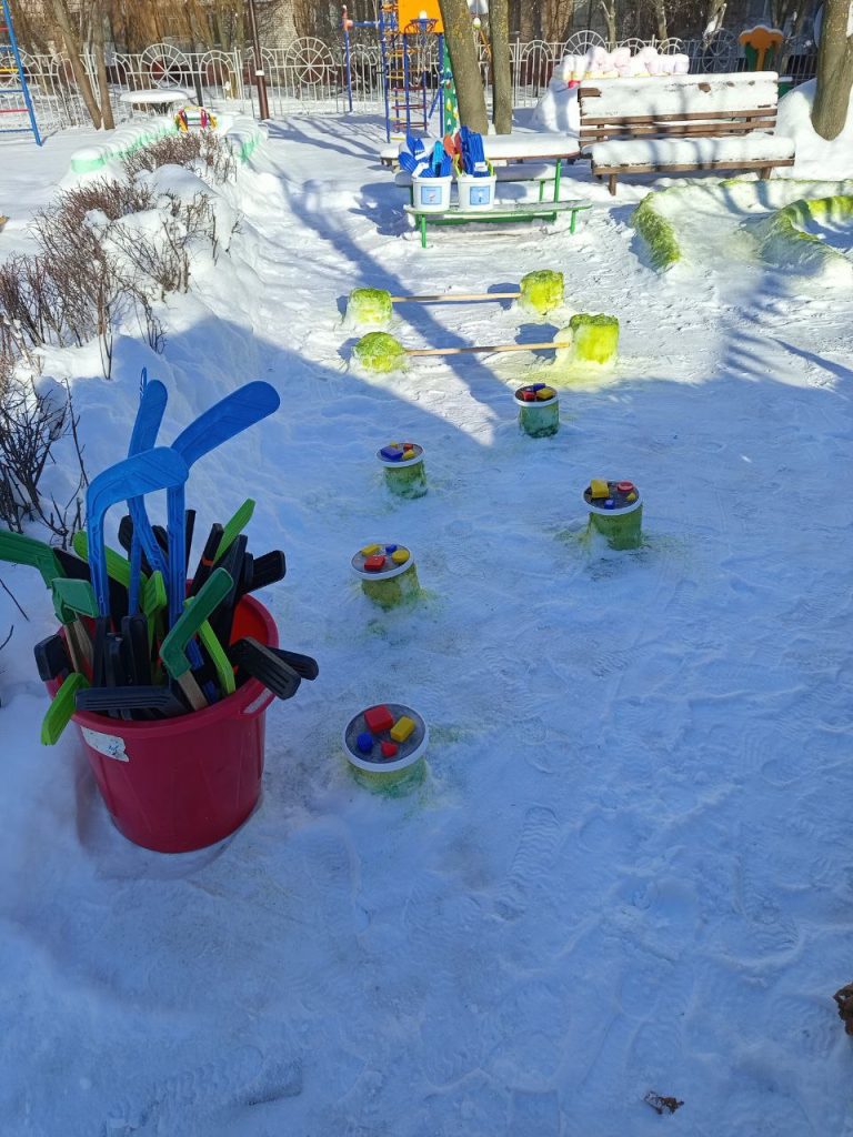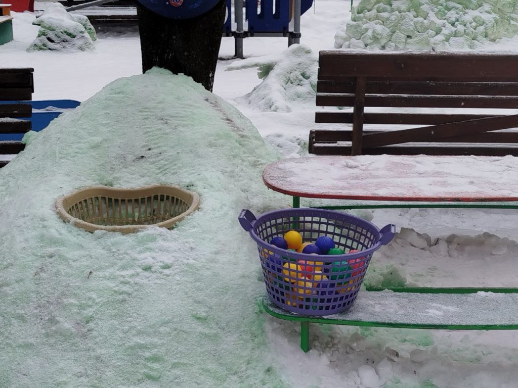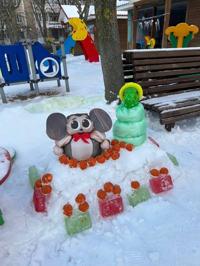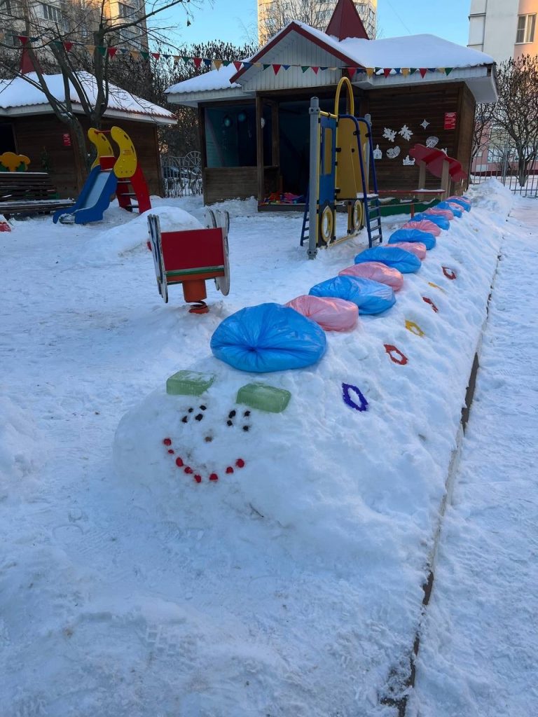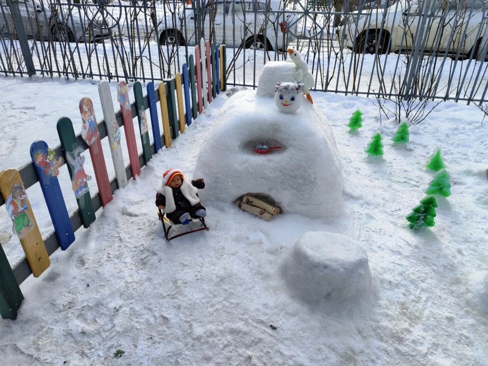 С огромным удовольствием ребята выходят на участки, потому что знают, что там их ждут увлекательные снежные постройки — герои сказок, с которыми можно поиграть.